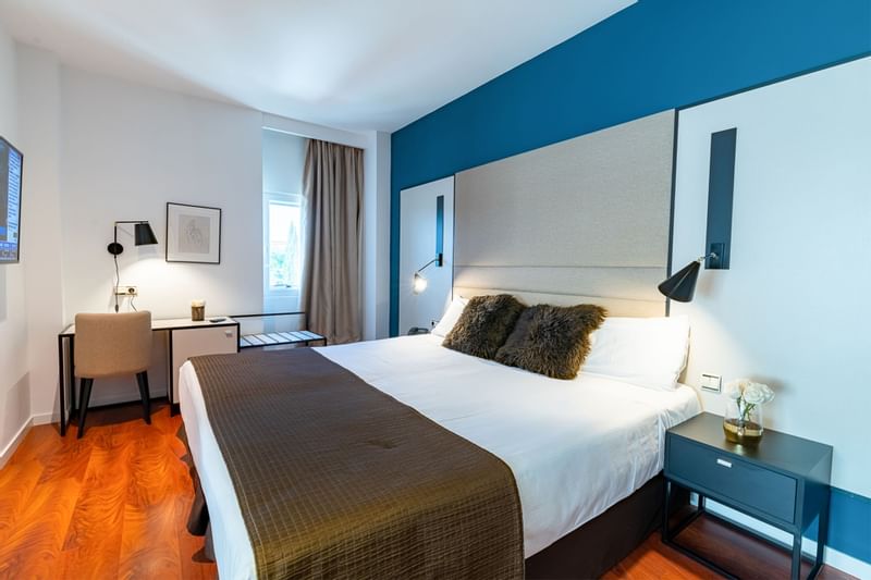 Con capacidad para dos personas, esta habitación cuenta con dos camas individuales o una cama doble King Size ( 2 x 2 ) con la posibilidad de añadir una extra. Habitación No Fumador.